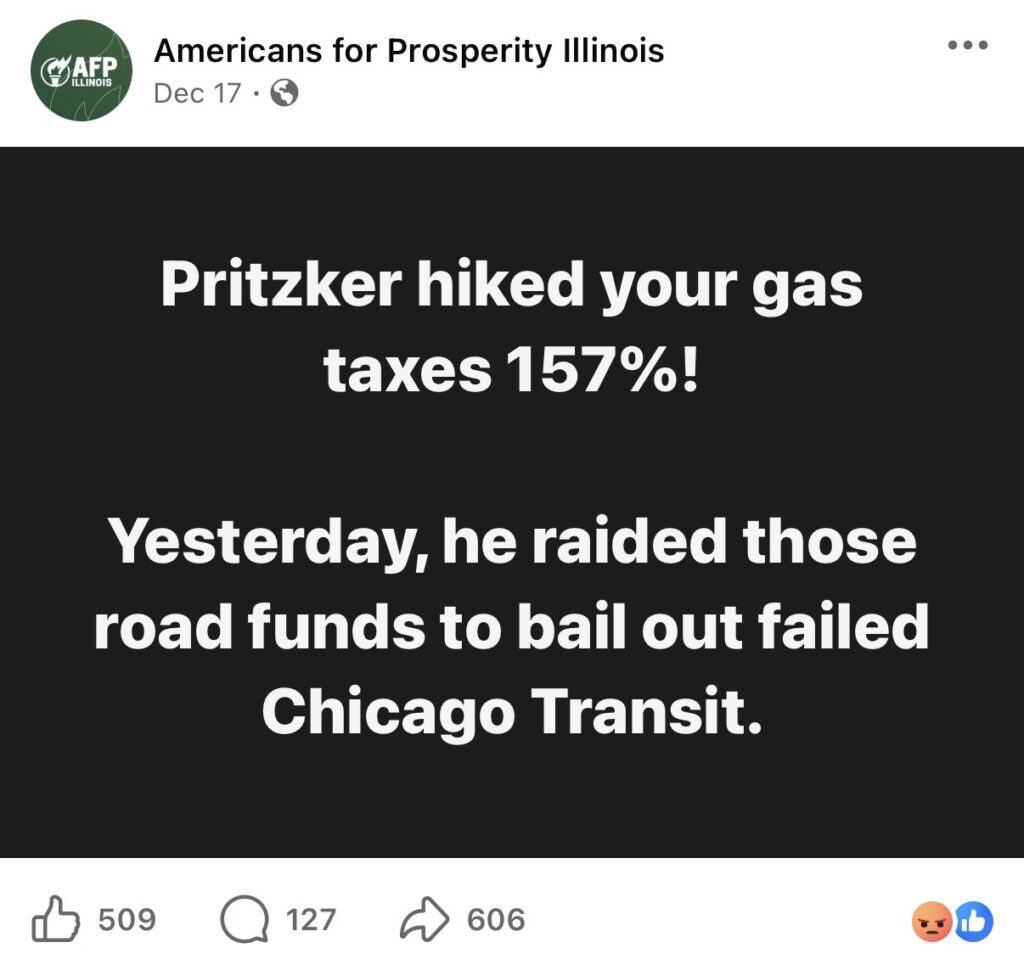The irony deepened on December 17, 2025, when AFP Illinois posted on Facebook: “Pritzker hiked your gas taxes 157%! Yesterday, he raided those road funds to bail out failed Chicago Transit.” The statement accurately condemns Democratic mismanagement – but omits the Republicans who helped make those hikes possible.
