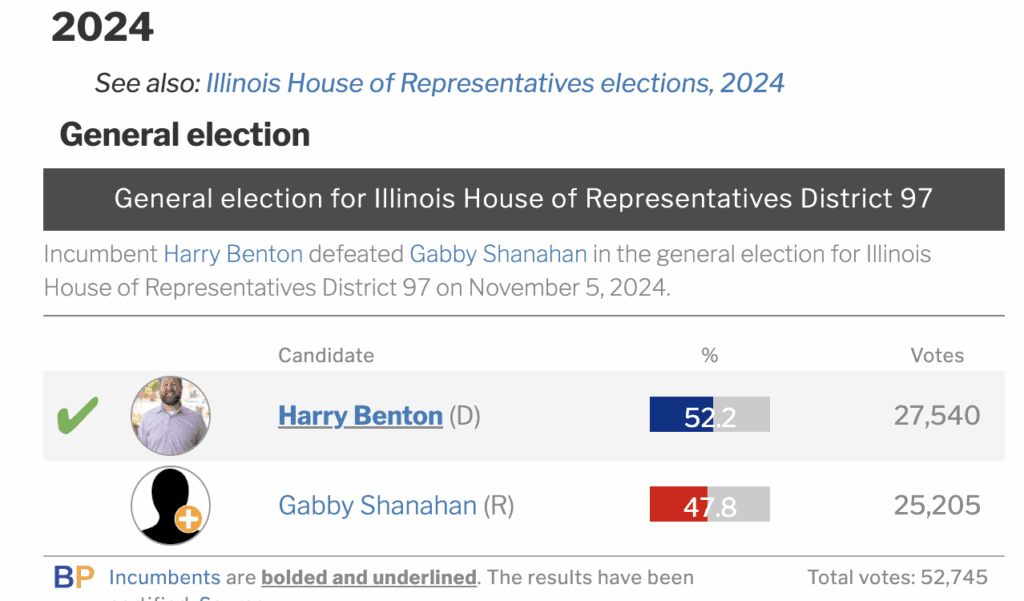 Shanahan ran as the Republican nominee for Illinois House District 97 in November 2024 and lost to Democrat incumbent Harry Benton, who won with 52.2 percent of the vote. Rather than stepping back from political activity, Shanahan has already filed petitions to run again for the same seat in the next election cycle, as of late October 2025.
