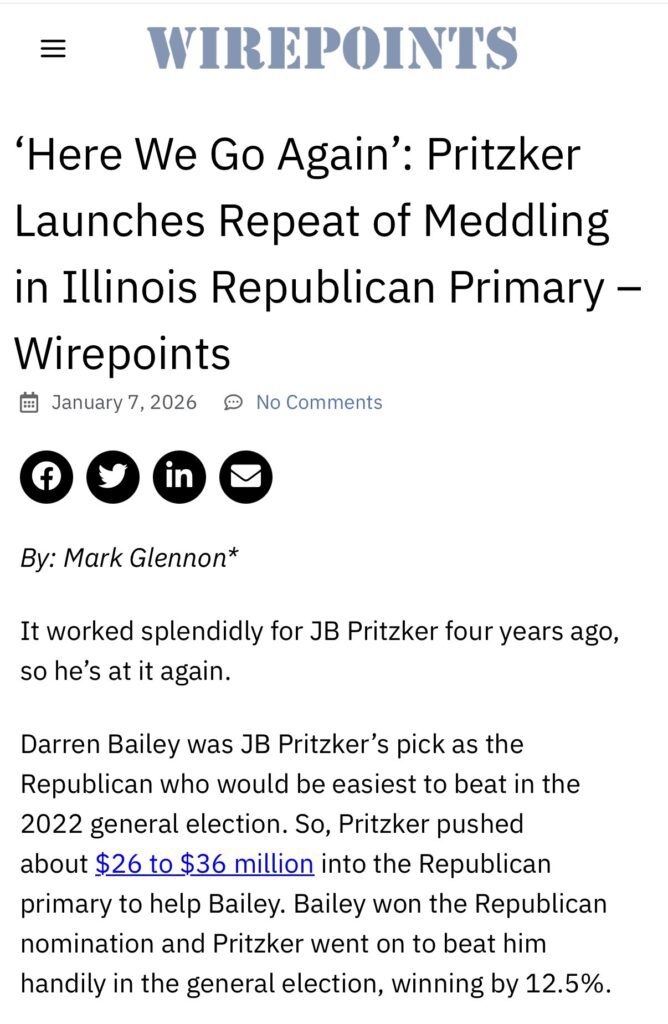 The irony is striking. Wirepoints routinely condemns corruption, insider politics, and rigged systems. Yet here it is, using a nonprofit platform to take sides in a GOP race – while Democrats quietly benefit from the infighting.