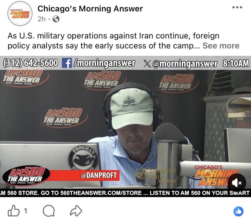 The controversy comes as AM 560 appears to be facing financial challenges. The station has reportedly cut shows and staff, and engagement on its social media platforms appears to be declining. In one example, Proft, who hosts his Chicago morning radio show from Naples, Florida, generated just one like.